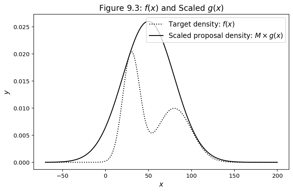 rho = min(1, target(lik, prior, n, h, theta_p)/target(lik, prior, n, h, theta))